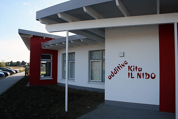 Für ein großes Neubaugebiet mit etwa 550 Baugrundstücken hat die Stadt Greven einen stadtinternen Wettbewerb für den Neubau einer Kindertagesstätte ausgeschrieben. Als Sieger wurde der Entwurf für die KiTa „Il Nido“ realisiert.